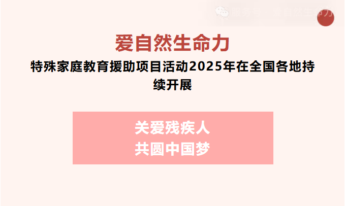 爱自然生命力特殊家庭教育援助项目活动2025年在全国各地持续开展:关爱残疾人,共圆中国梦